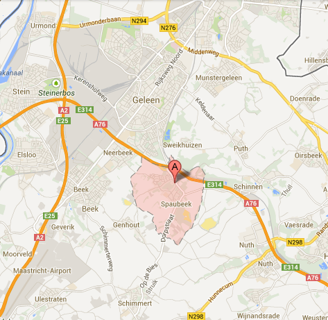 Spaubeek ligt ten oosten van Beek en ten zuid - oosten van Geleen.